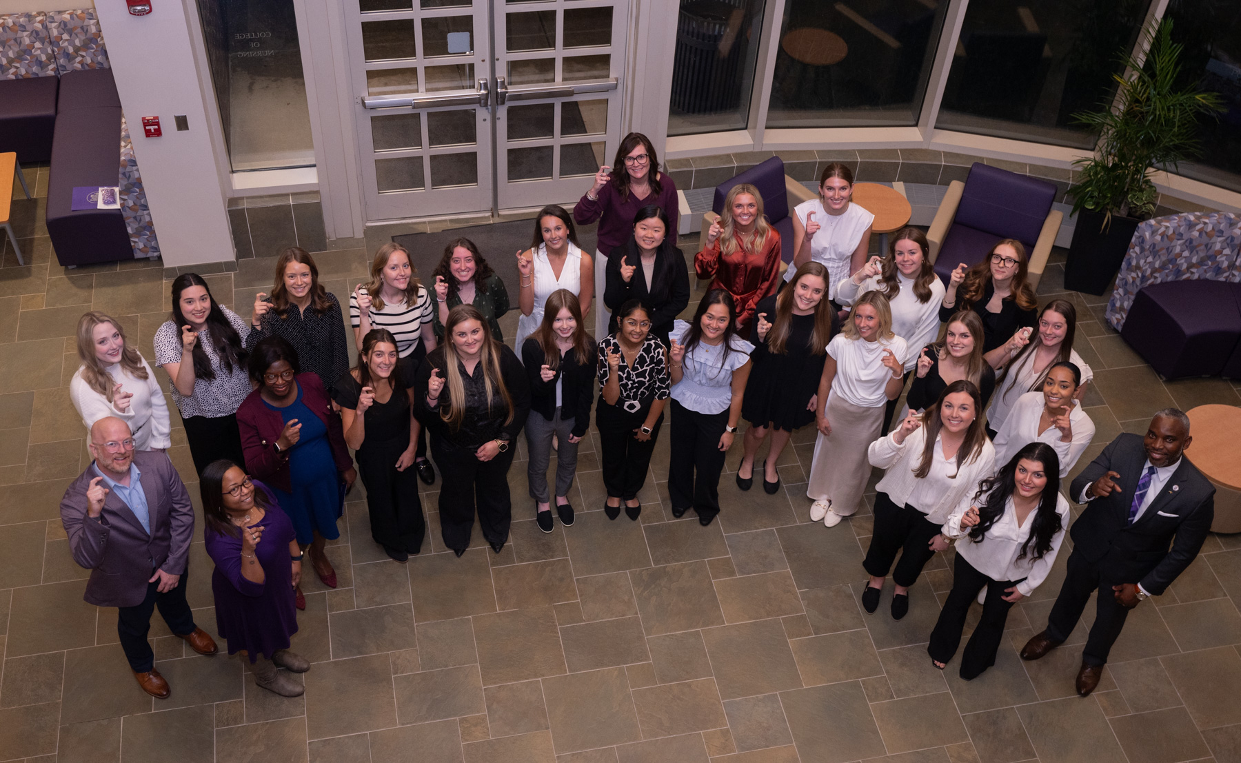 Pictured: 26 Beta Nu Inductees, along with Dr. Thompson Forbes, Beta Nu President, and Dr. Bim Akintade, ECU CON Dean